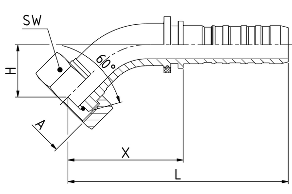 Tête d'étanchéité BSP, cône 60° avec joint torique et écrou-raccord, filetage BSP