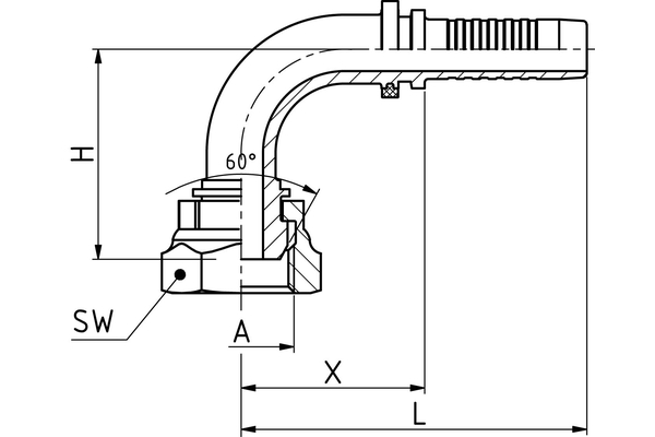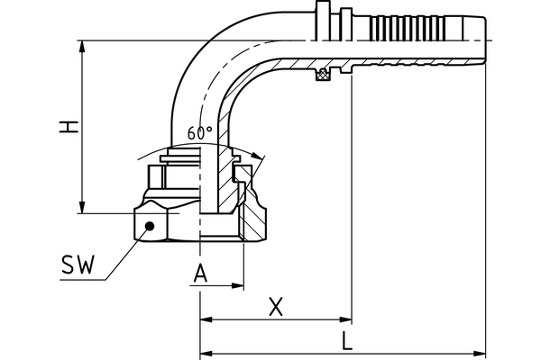 Tête d'étanchéité BSP, cône 60° avec écrou-raccord, filetage BSP
