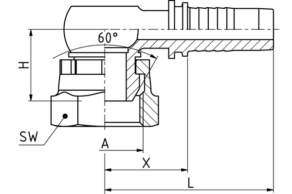 Tête d'étanchéité BSP, cône 60° avec écrou-raccord, filetage BSP