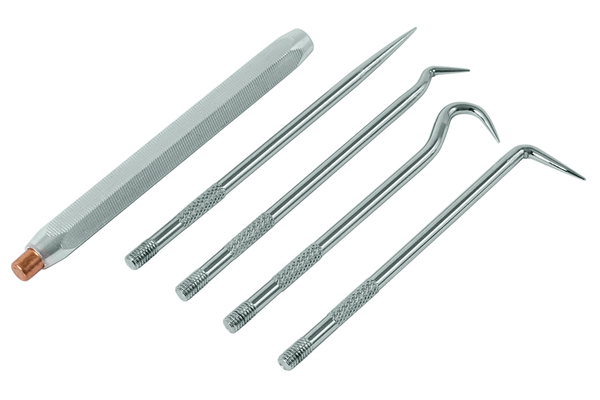 Le kit de levage de joints toriques en cinq pièces pour faciliter le montage des joints toriques. Une poignée avec quatre inserts de levage à joint torique