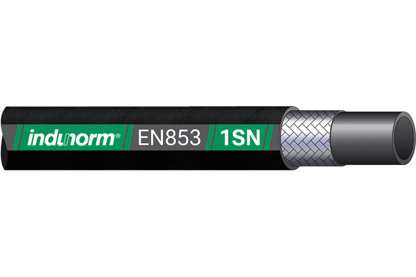 Application: Applications moyenne pression Couleur revêtement extérieur: noir Couleur âme intérieure: noir Homologation MSHA: non Médias: Fluide hydraulique à base d'huile minérale, émulsions d'huile et d'eau et solutions aqueuses de glycol Nombre de couches: 1 Norme/Standards: EN 853 - 1SN Plage de température [°C]: -40°C à +100°C, eau et fluides à base d'eau jusqu'à max. +70°C Revêtement extérieur: Caoutchouc synthétique, résistant à l'abrasion Support de pression: Tresse en fil d'acier à haute résistance Température de service max. [°C]: +100°C Âme intérieure: Caoutchouc synthétique