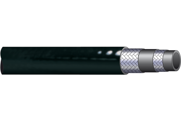 Application: Plage haute pression Couleur revêtement extérieur: noir Couleur âme intérieure: noir Homologation MSHA: non Médias: Huiles minérales et fluides à base d'ester phosphorique, fluides hydrauliques, graisses Nombre de couches: 2 Norme/Standards: SAE 100 R2 Plage de température [°C]: -40°C à +100°C, eau et fluides à base d'eau jusqu'à max. +70°C Revêtement extérieur: Polyuréthane Support de pression: Fils d'acier à haute résistance laitonné. Avec une couche intermédiaire réduisant la friction pour améliorer la résistance aux impulsions. Température de service max. [°C]: +100°C Âme intérieure: Tube en polyamide extrudé sans soudure (PEL)