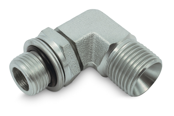 Instelbare gebogen schroefkoppeling 90° BSP buitendraad - metrische inschroefdraad met O-ring en contramoer