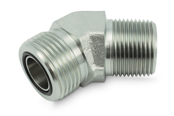 Gebogen schroefkoppeling 45° ORFS buitendraad - NPT buitendraad