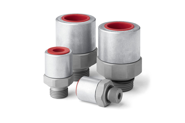 Draaibus. De serie 860 Plug-In draaibus met G buitenschroefdraad (ISO 228/1) en geïntegreerde NBR-rubberafdichting (ISO 1179-2) is verkrijgbaar in de maten 3/8" tot 1". Alleen te gebruiken met de Serie 716-stekkernippel.
