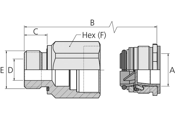 Koppeling - G buitenschroefdraad met ingebouwde afdichting. Serie 830 koppelingen zijn verkrijgbaar met G buitenschroefdraad (ISO 228/1) en met rubberen afdichting (volgens ISO 1179-2) in de maten 1/4" tot 1".